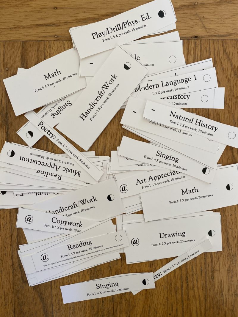 If that seems like a ton, know that we won’t be doing all of those subjects every single day — and, like I said, each subject is only 10-20 minutes long. Our entire school day is actually only two hours! The year is broken up into three terms, each lasting 12 weeks. Our fall term will begin at the beginning of September and end at the beginning of December. I plan to take all of December off of school to focus on the fun stuff with Advent and Christmas – then we will start our second term at the beginning of January.